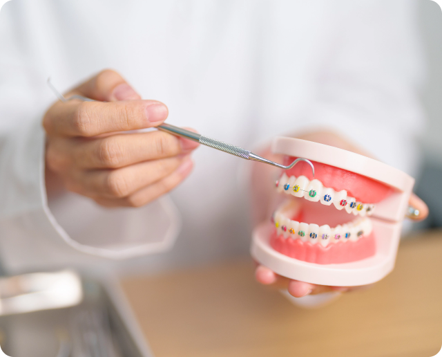 Braces apply gentle, consistent pressure to guide teeth into better alignment. With regular check-ups and adjustments, your treatment will progress steadily toward your ideal bite and smile.